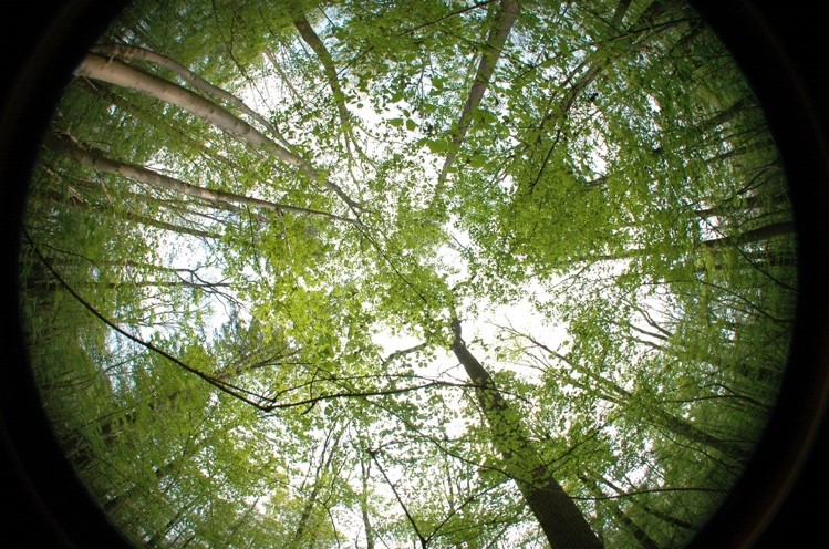 Hemispherical photograph of a beech forest. The denser the canopy, the greater the cooling effect in the understorey and on the forest floor. (Photo: Pieter de Frenne)