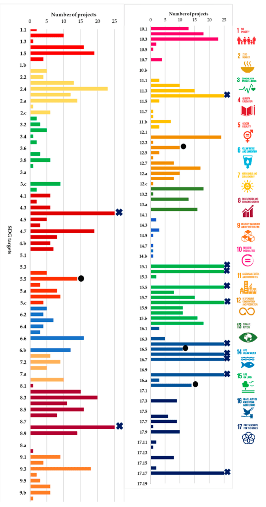 Almost a decade since the establishment of Reducing Emissions from Deforestation and Degradation (REDD+), this study investigates the extent to which REDD+ projects are delivering on the promise of co-benefits and the elusive ‘triple-win’ for climate, biodiversity, and local communities. The Climate, Community and Biodiversity Alliance (CCB) is among several leading REDD+ certification standards that are designed to support the delivery of social and environmental co-benefits, and ‘socially-just’ carbon. This study uses an in-depth content analysis of 25 subnational REDD+ project documents to assess the extent to which REDD+ project objectives align with Sustainable Development Goals (SDG) targets, and evaluates the reporting of progress towards meeting these objectives. Currently the CCB standards address a relatively small subset of SDG targets. Despite this, we find that REDD+ projects aspire to work on a much broader set of SDG target objectives, thus going beyond what the CCB Standards require for REDD+ validation. However, although reviewed REDD+ projects have these aspirations, very few are actively monitoring impact against the goals. There is a gap between aspiration and reported progress at the goal level, and for each project: on average, only a third of SDGs that are being targeted by REDD+ projects are showing ‘improvement’. The analysis shows which global goals are most frequently targeted, and which are the least. It also allows an analysis of which projects are following through most effectively in terms of monitoring progress towards the SDGs. This assessment provides insights into the priorities of REDD+ project proponents, suggesting that REDD+ has unfulfilled potential to elicit positive change in relation to the SDGs. Our analysis also shows that there is considerable potential for the safeguarding bodies to do more to ensure that real improvements are made, and reported against, aligning REDD+ projects more strongly with global development agendas.